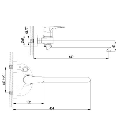- Смеситель универсальный с плоским изливом 350 мм.