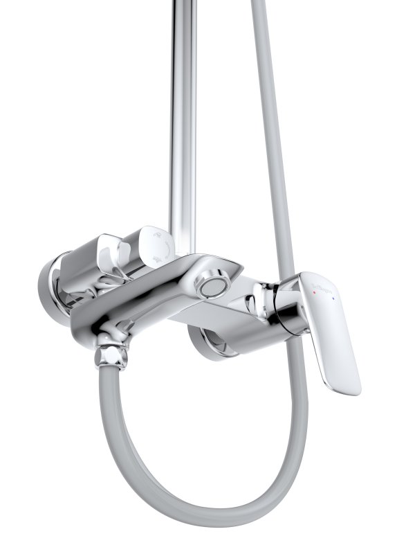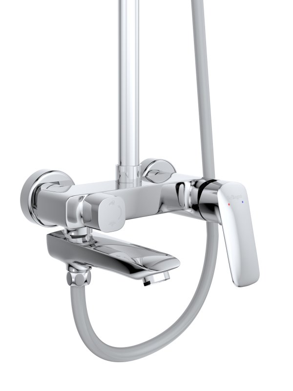 - Оснащение: эксцентрики, душевой шланг ПВХ длиной 150 см, ручной душ 3-х режимный, верхний душ, смеситель с поворотным изливом для ванны и дивертором