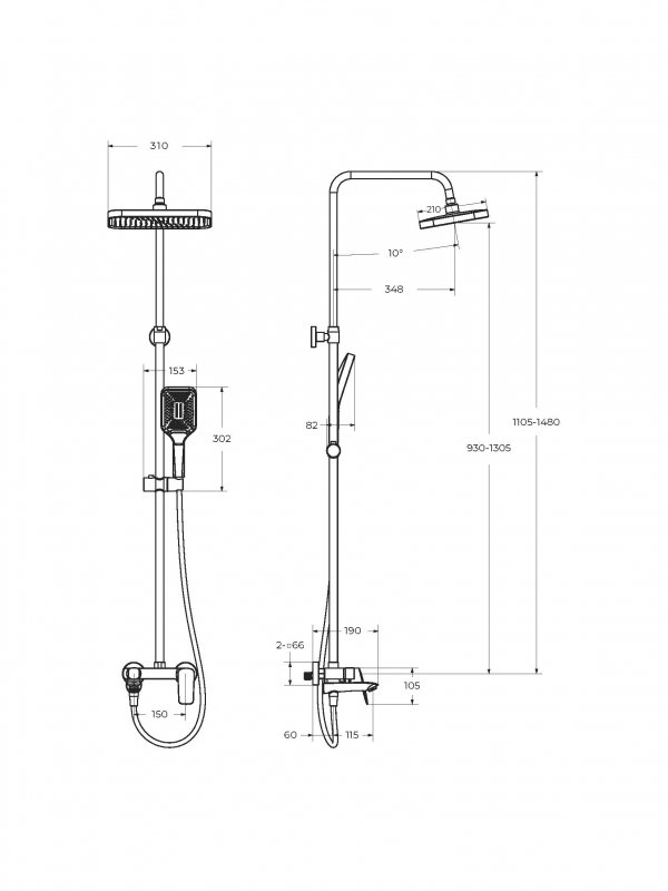- Дополнительная информация: регулируемая высота верхнего душа