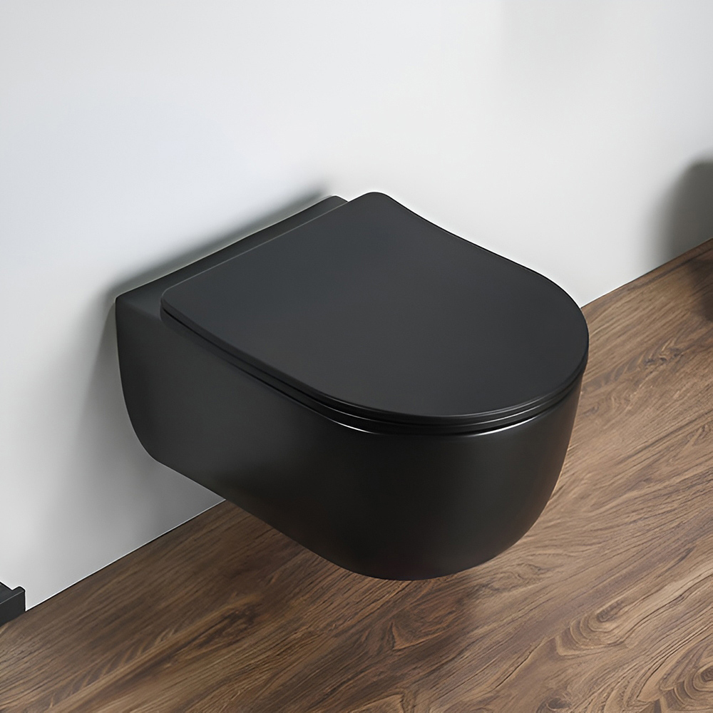 Унитаз подвесной AVS Диапазон безободковый с сиденьем, черный матовый