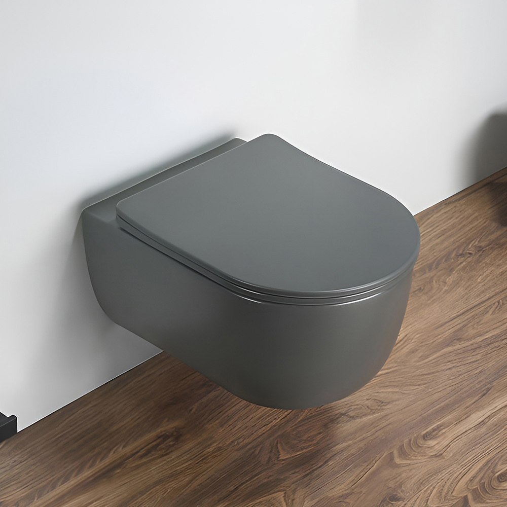 Унитаз подвесной AVS Диапазон безободковый с сиденьем, темно-серый матовый