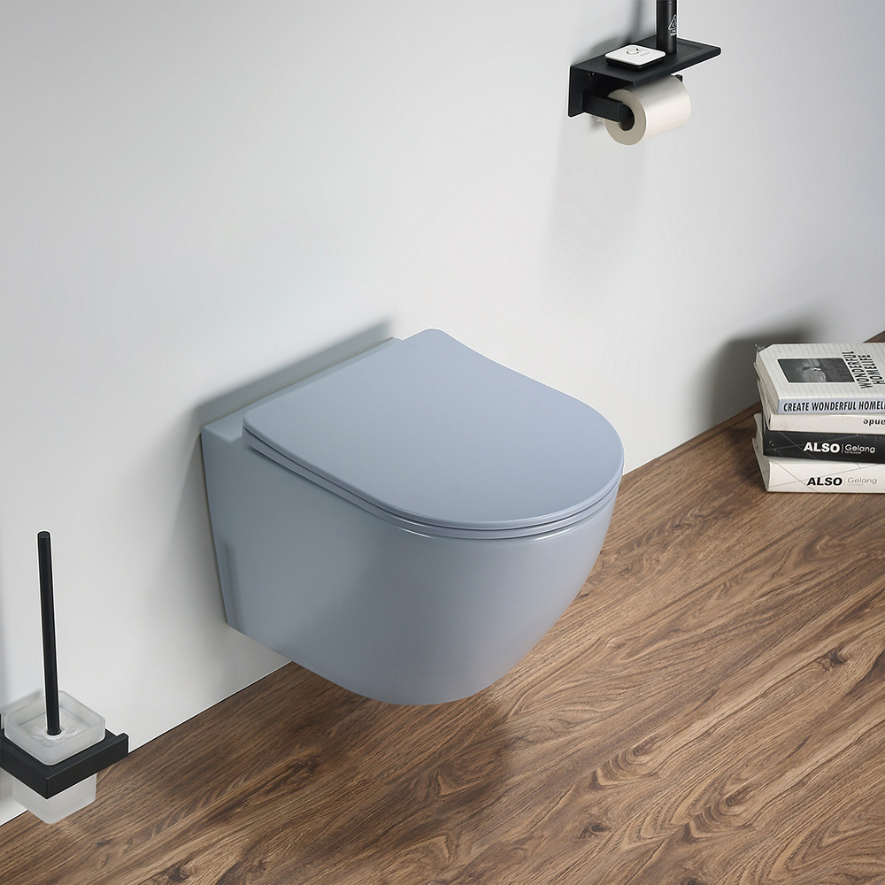 Унитаз подвесной AVS Контур безободковый с сиденьем, серо-голубой матовый