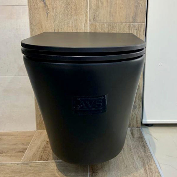 Унитаз подвесной AVS Тоник безободковый с сиденьем, черный матовый